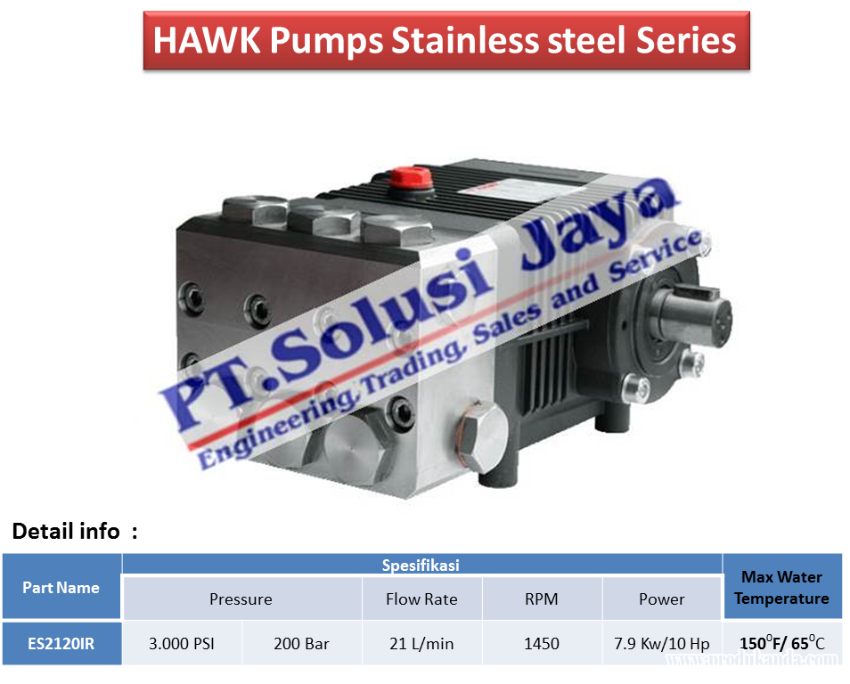 - Pump : Triple water plunger “HAWK ES 2120 IR Ex Italy”
